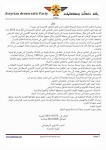 واليوم، ومع دخول سوريا مرحلة سياسية جديدة، وما حمله اتفاق 29 كانون الأول بين الحكومة السورية المؤقتة و قوات سوريا الديمقراطية من مؤشرات على انطلاق مسار مختلف، فإننا في الحزب الآشوري الديمقراطي نعلن دعمنا لأي مشروع وطني حقيقي يهدف إلى بناء سوريا جديدة، سوريا لجميع أبنائها، قائمة على المواطنة المتساوية، والعدالة، والتعددية، والشراكة الفعلية في إدارة البلاد.
