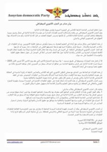بيان صادر عن الحزب الآشوري الديمقراطي